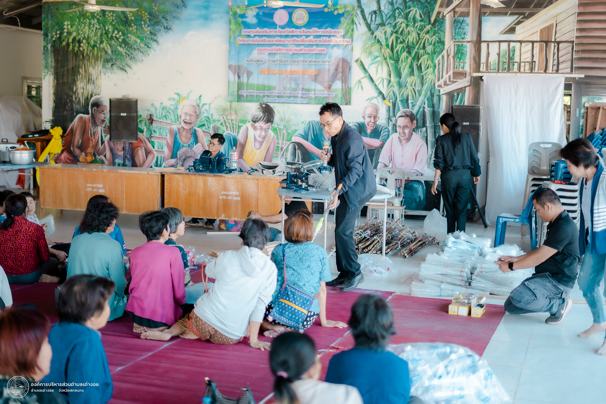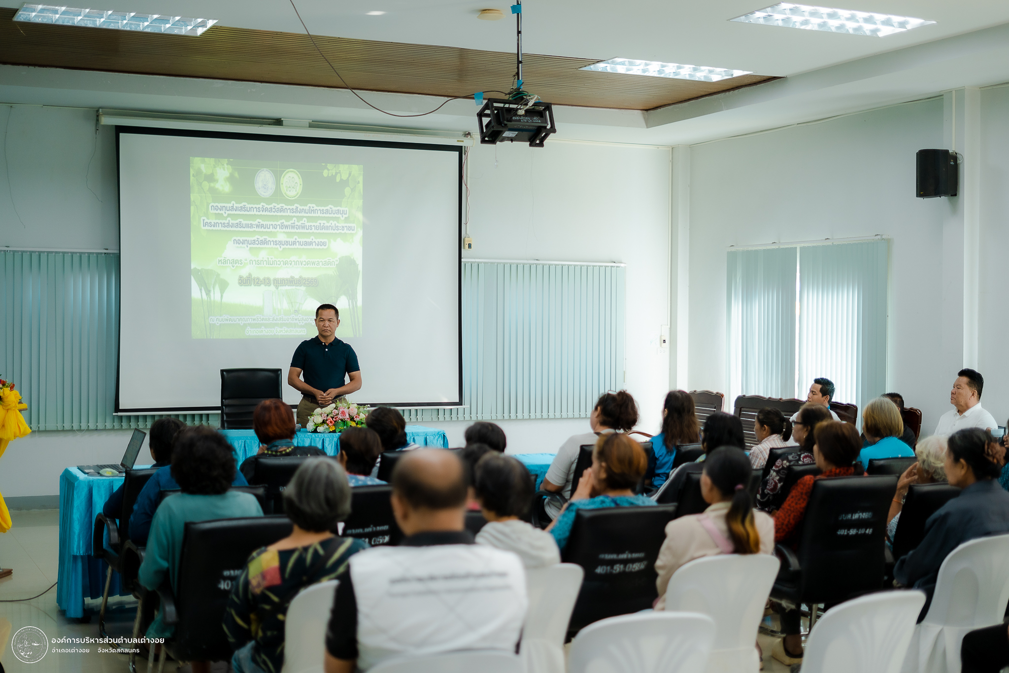 ตามที่ กองทุนสวัสดิการชุมชนตำบลเต่างอย (องค์กรสวัสดิการชุมชน) ได้ดำเนินโครงการ ส่งเสริมและพัฒนาอาชีพเพื่อเพิ่มรายได้แก่ประชาชนตำบลเต่างอย ประจำปีงบประมาณ พ.ศ. 2569 หลักสูตร การทำไม้กวาดจากขวดพลาสติก ดำเนินการในวันที่ 12-13 กุมภาพันธ์ 2569 โดยได้รับงบประมาณสนับสนุนจากกองทุนส่งเสริมการจัดสวัสดิการสังคม ตามมติคณะอนุกรรมการบริหารกองทุนส่งเสริมการจัดสวัสดิการสังคมจังหวัดสกลนคร ครั้งที่ 1/2569 นั้น