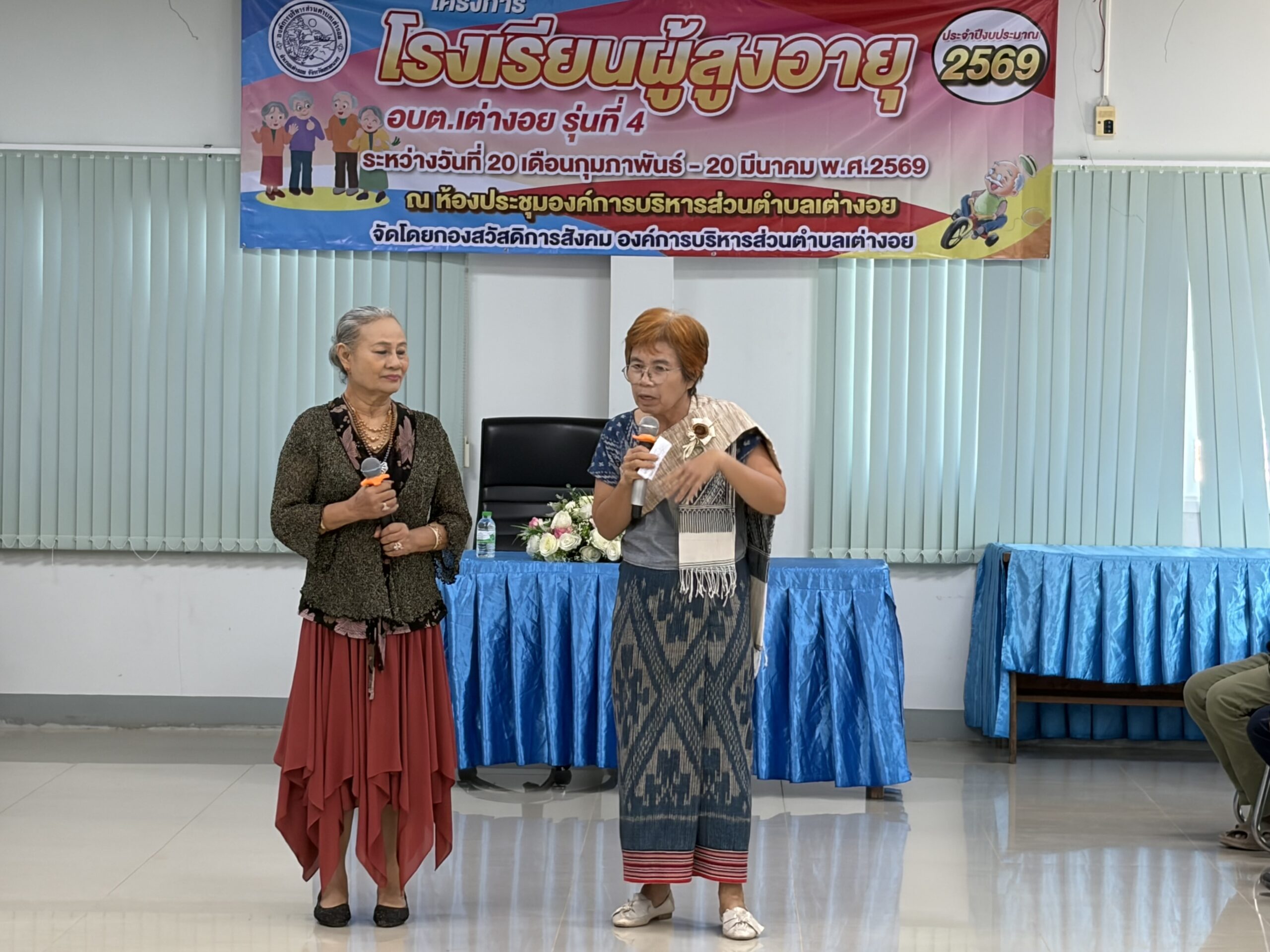 ตามที่กองสวัสดิการสังคม ดำเนินการจัดโครงการโรงเรียนผู้สูงอายุ อบต.เต่างอย ประจำปีงบประมาณ 2569 โดยมีวัตถุประสงค์เพื่อให้ผู้สูงอายุได้มีสถานที่พบปะ แลกเปลี่ยนประสบการณ์ ทำกิจกรรมร่วมกัน สร้างความอบอุ่นและให้กำลังใจผู้สูงอายุในชุมชน ให้เกิดความรู้สึกไม่ถูกทอดทิ้ง และมองตัวเองว่ามีคุณค่าในสังคมต่อไป โดยจัดกิจกรรมทั้งหมด จำนวน 3 ครั้ง เพื่อสนับสนุนการอบรม ให้ความรู้ด้านต่างๆ อย่างครอบคลุมและกิจกรรมการนันทนาการให้แก่ผู้สูงอายุ ดำเนินระหว่าง วันที่ 20 กุมภาพันธ์ -20 มีนาคม 2569 ณ ห้องประชุม องค์การบริหารส่วนตำบลเต่างอย โดยมีผู้เข้าร่วมโครงการ จำนวน 60 คน ณ ห้องประชุม องค์การบริหารส่วนตำบลเต่างอย นั้น